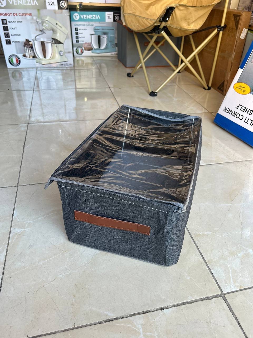 رؤية واضحة: تتميز بـ غطاء علوي شفاف يسهل عليك رؤية المحتويات واختيار ملابسك بسرعة دون الحاجة لفتح الصندوق.