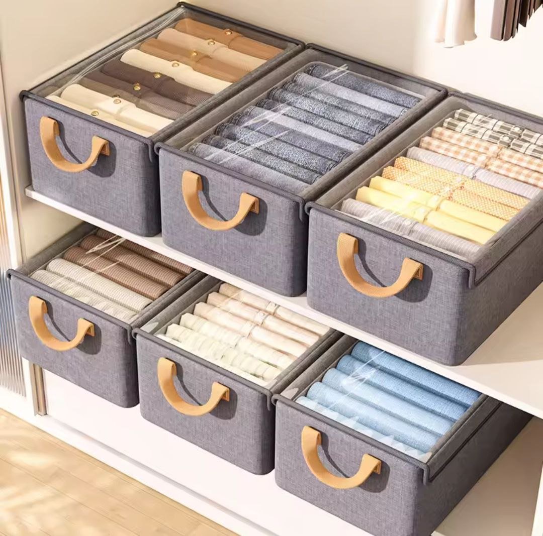 ترتيب مثالي: صناديق قماشية متينة مصممة لترتيب الخزائن والأرفف، مثالية لتنظيم التيشيرتات، البنطلونات، أو المناشف بشكل أنيق وجذاب.
