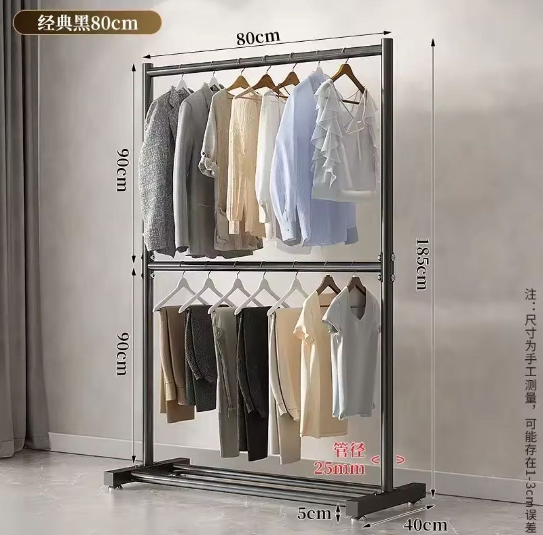 سعة تعليق مضاعفة: تتميز بوجود قضيبين للتعليق (علوي وسفلي)، مما يتيح لك فصل القمصان والجاكيتات عن السراويل والتنورات بسهولة.
