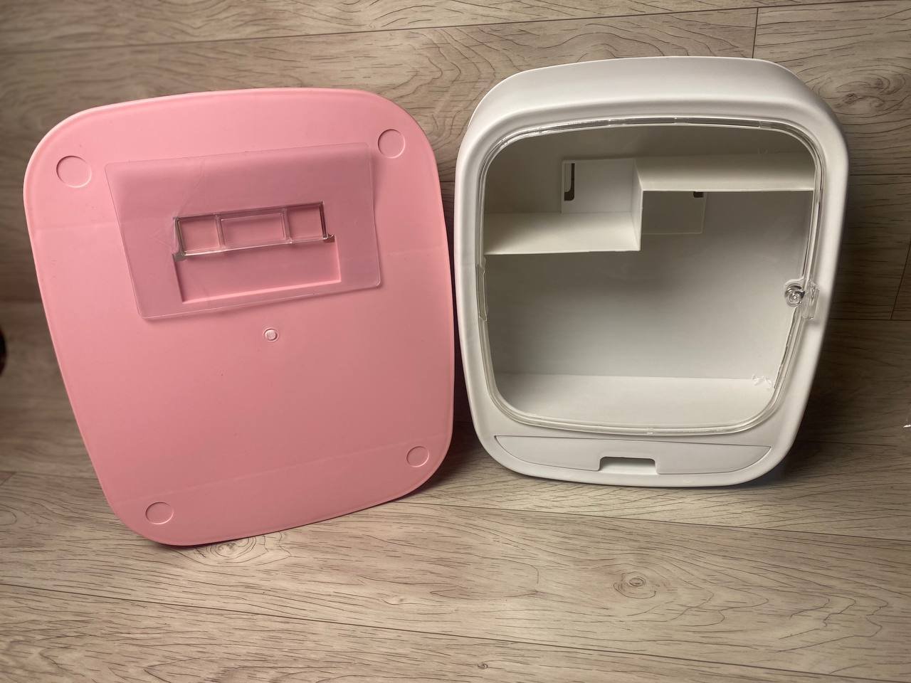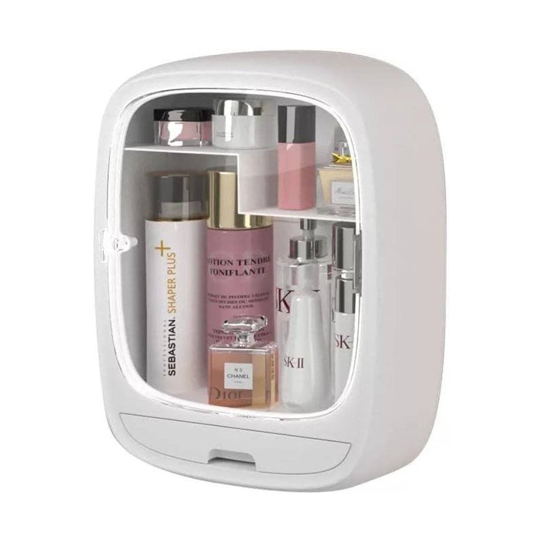 حماية كاملة: مزود بـ باب شفاف يحمي العطور والكريمات من الغبار ورذاذ الماء، مع الحفاظ على رؤية واضحة لمحتوياته.